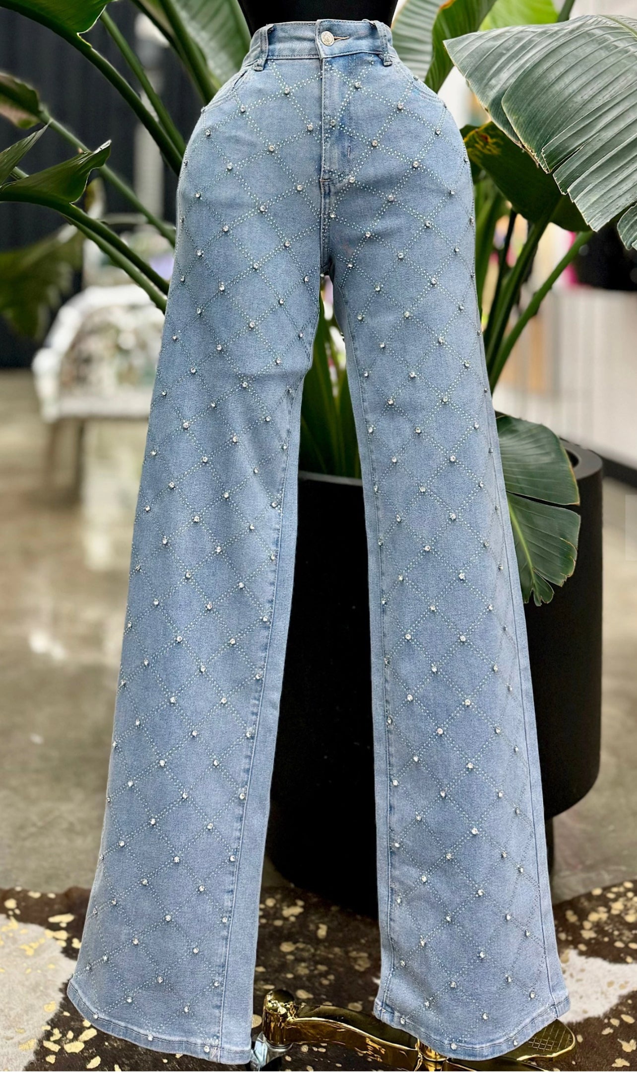 Introducing 005-DENIM BLUE, a beautiful denim pant decorated with shimmering rhinestones and designed with Stresh technology for added comfort and flexibility. Perfect for any occasion, this pant combines style and functionality for a truly stunning look. Upgrade your wardrobe with this must-have piece!🦋😍