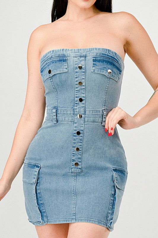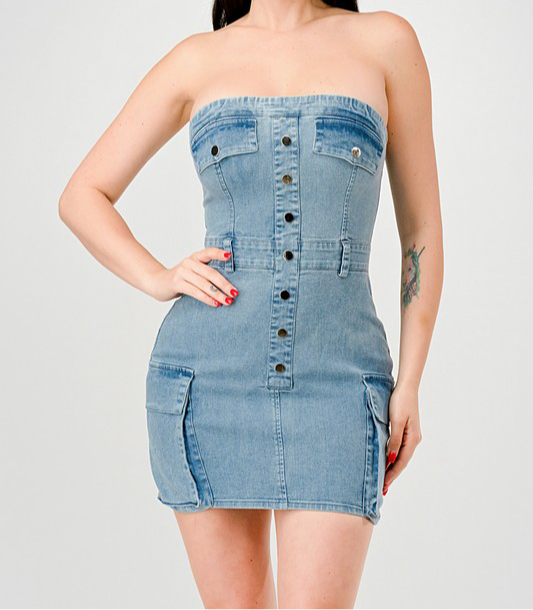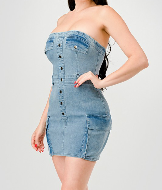 Featuring a beautiful distressed denim design, the 067-LISSBETH cargo dress combines style and durability. With expert craftsmanship and high-quality materials, this dress is perfect for any occasion. Add a touch of edge to your wardrobe with this must-have piece.🥰