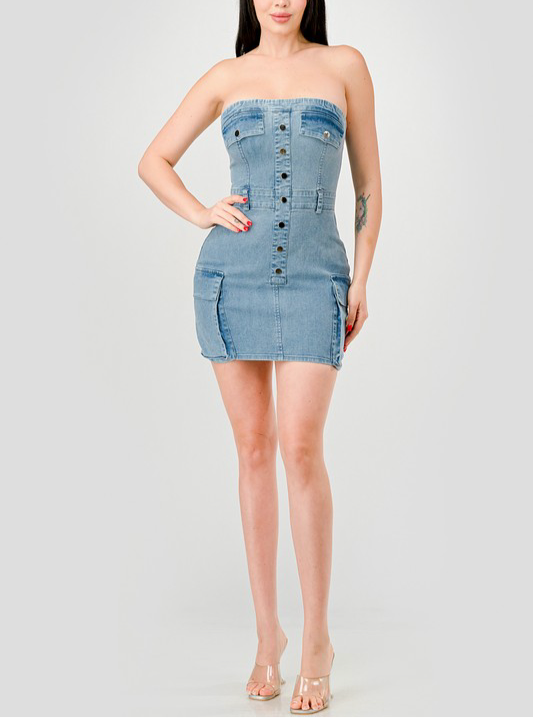Con un hermoso diseño de mezclilla envejecida, el vestido cargo 067-LISSBETH combina estilo y durabilidad. Con artesanía experta y materiales de alta calidad, este vestido es perfecto para cualquier ocasión. Añade un toque de borde a tu armario con esta pieza imprescindible.🥰