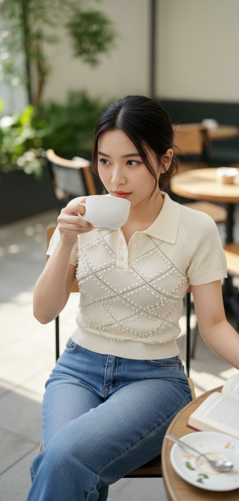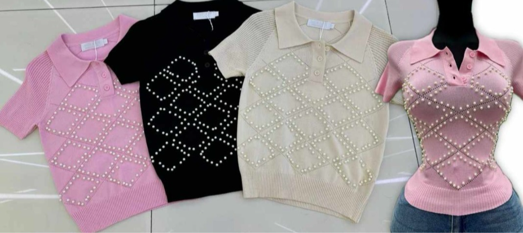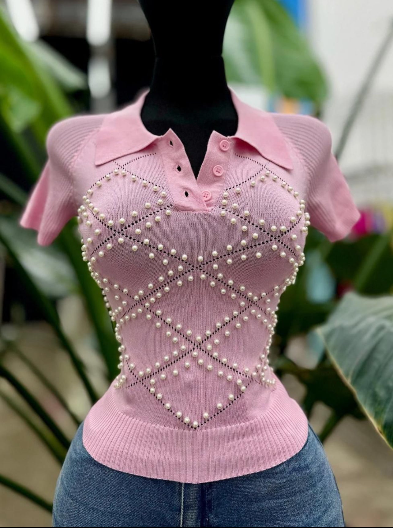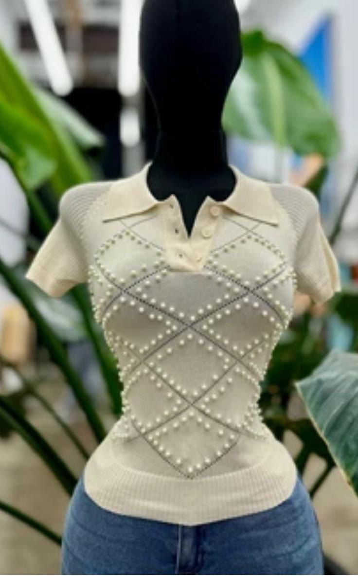 This elegant top features intricate pearl detailing, adding a touch of sophistication to any outfit. The pearls elevate the design, showcasing your style and taste. Perfect for any occasion, this top is a must-have for those who appreciate timeless and refined fashion.