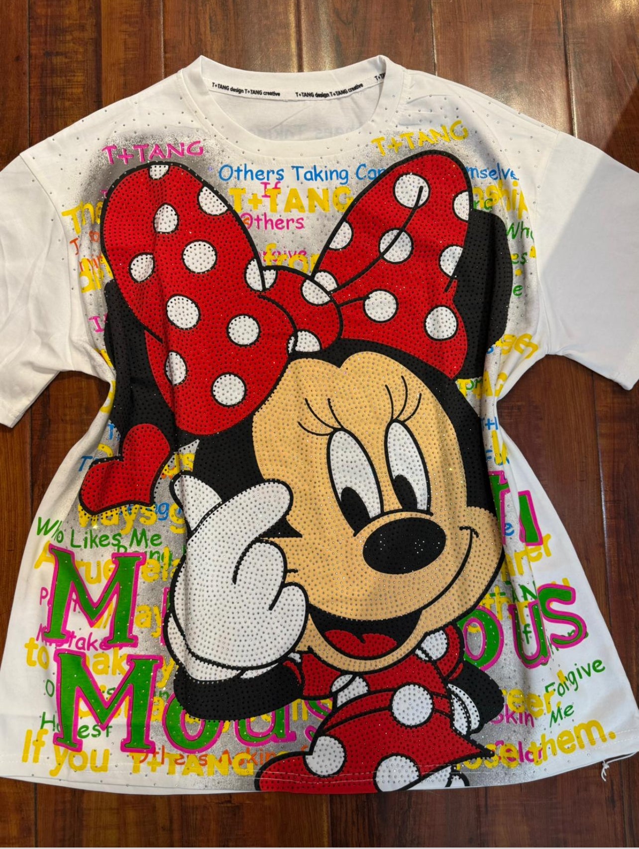 The CH004FANNY Oversized T-shirt is a comfortable and fashionable choice with vibrant colors and sparkling rhinestones. Its oversized design allows for a relaxed fit, while the addition of rhinestones adds a touch of glamour to any outfit. Bring a pop of color and sparkle to your wardrobe with this stylish t-shirt.