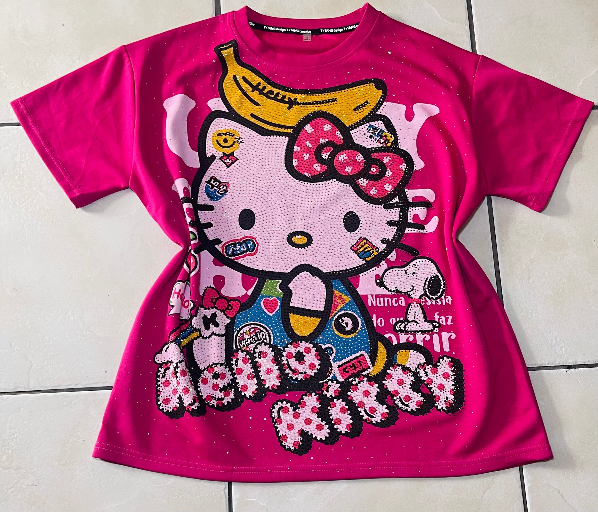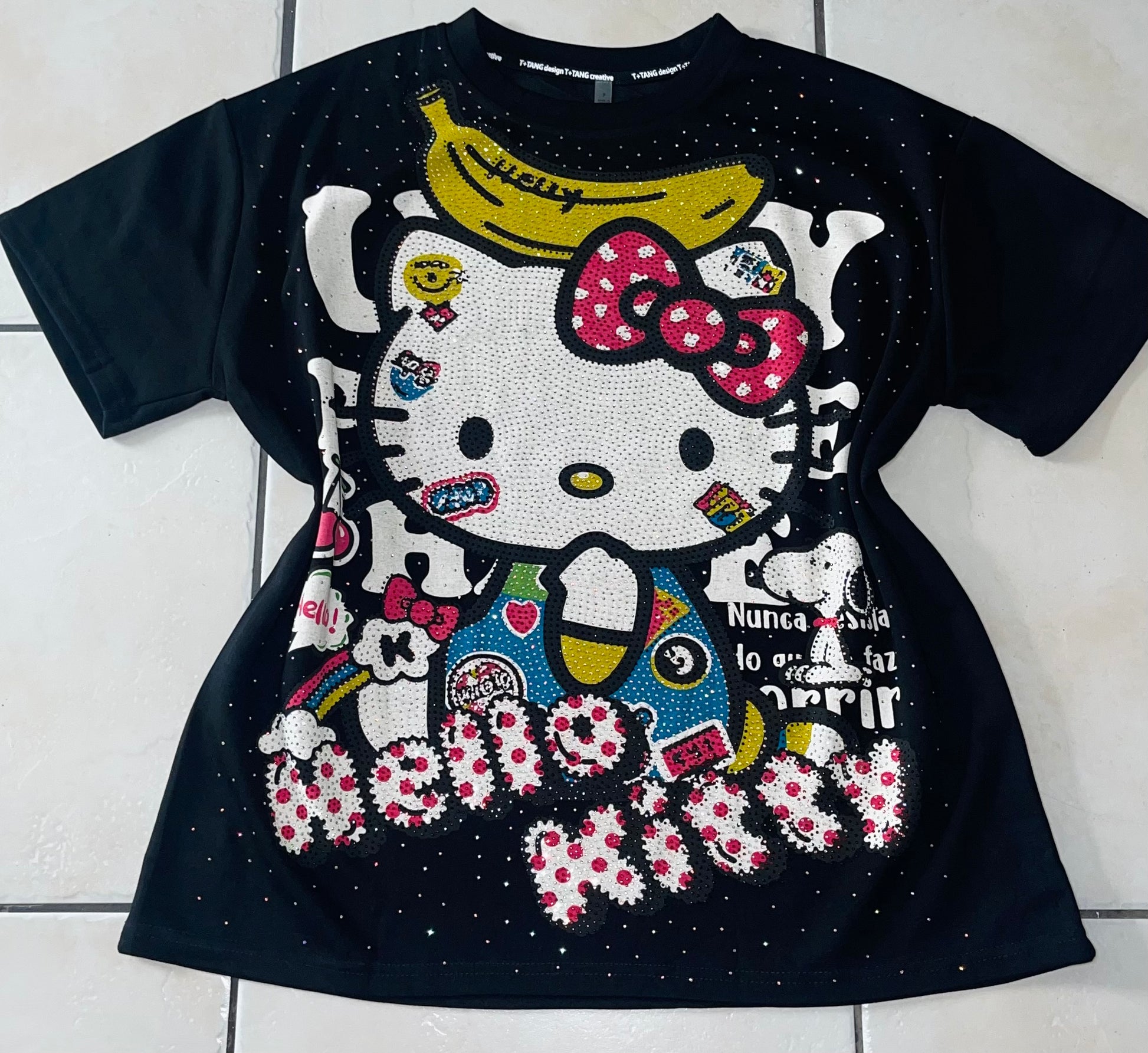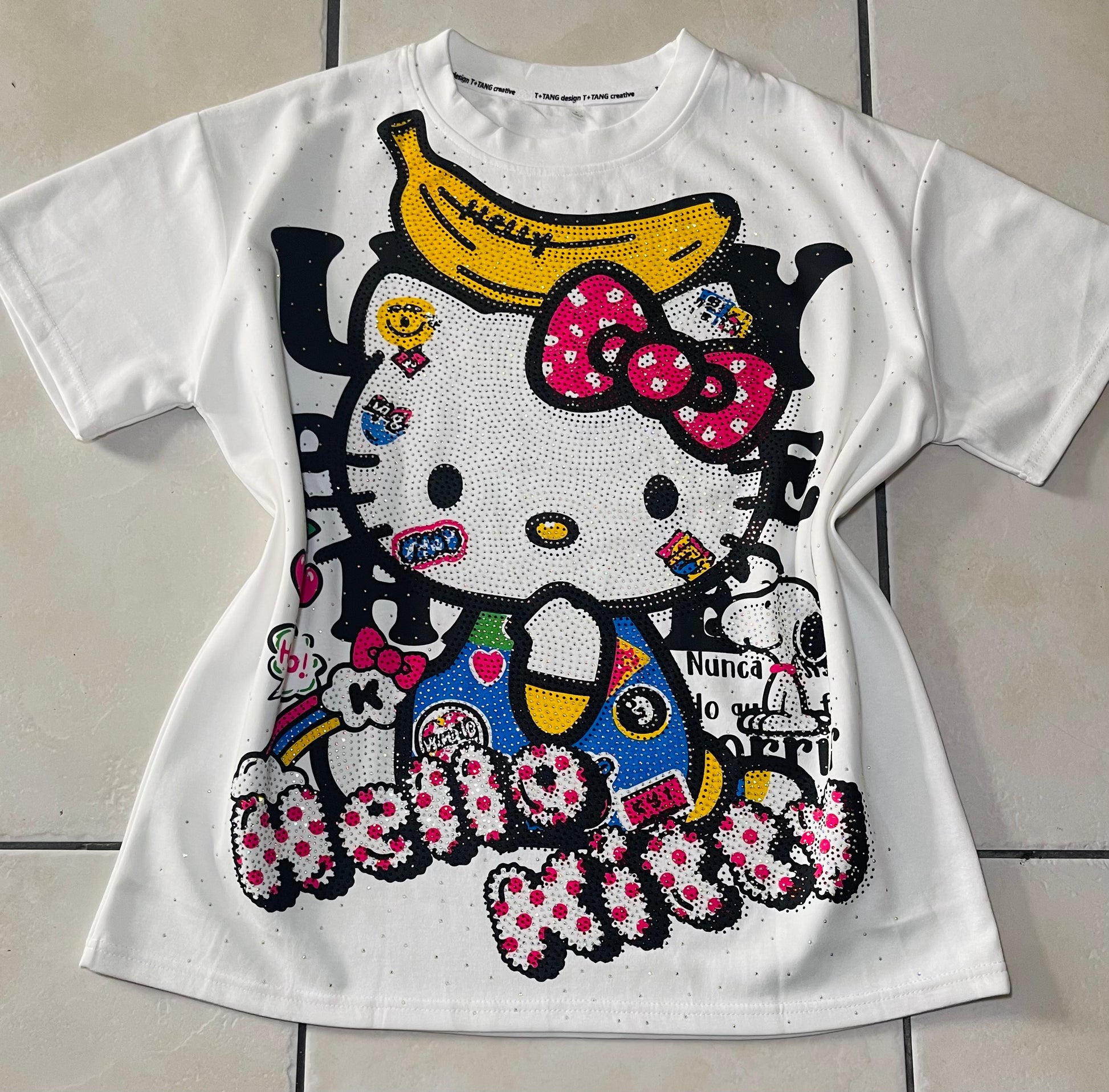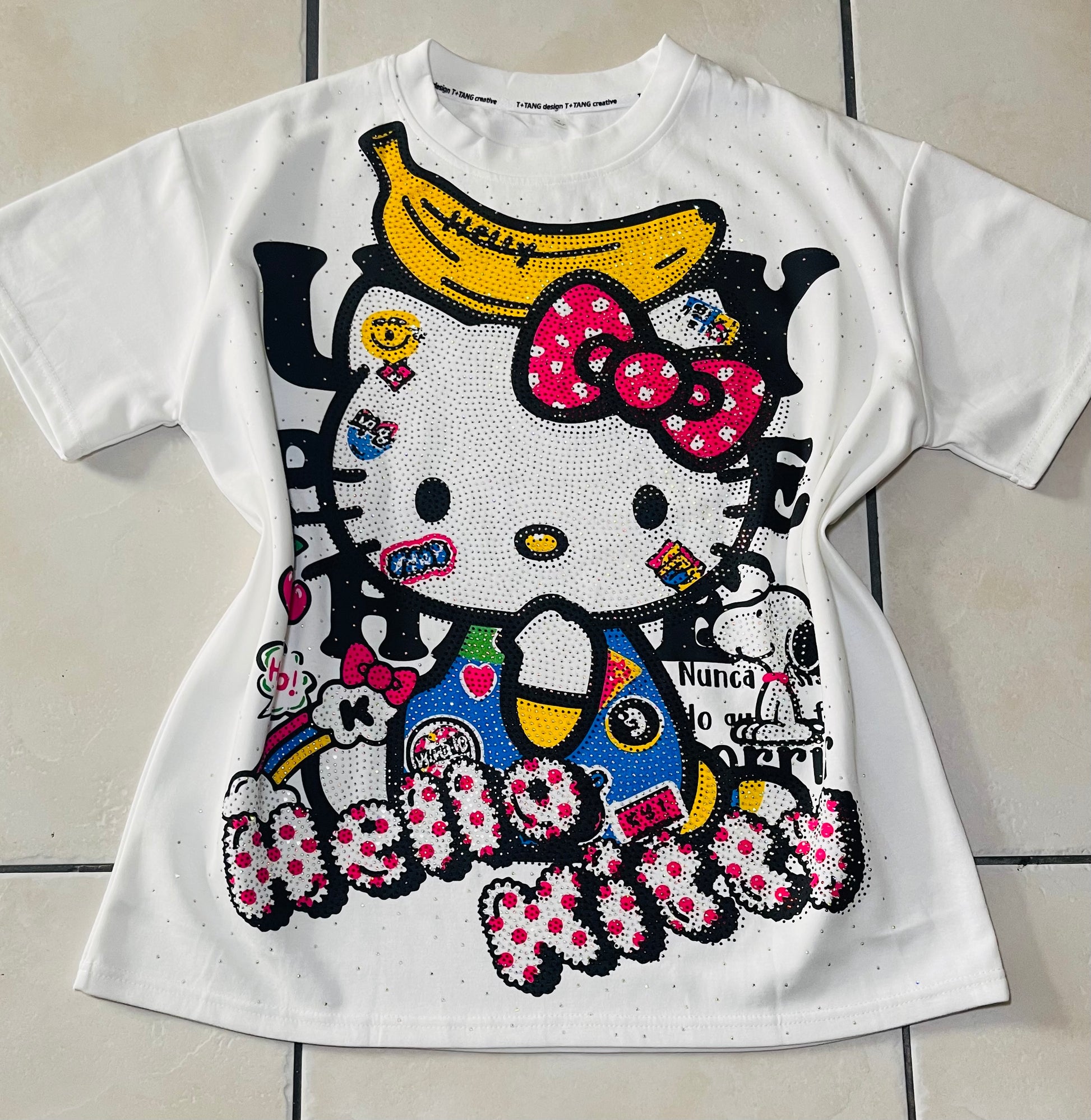 Gatita8014-Oversized T-shirt with long rhinestones