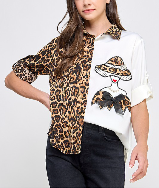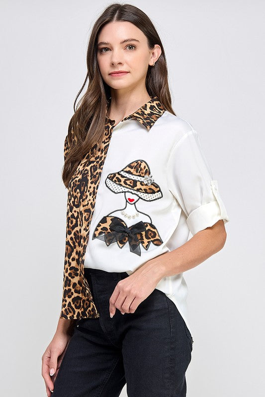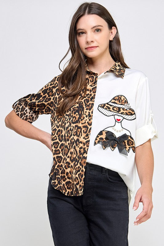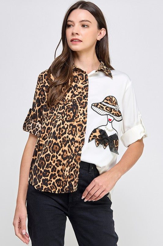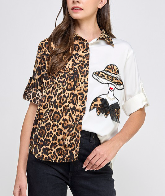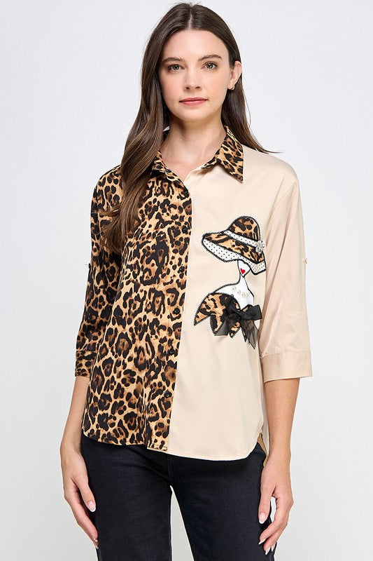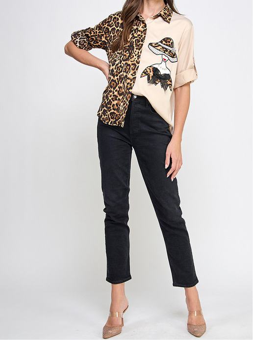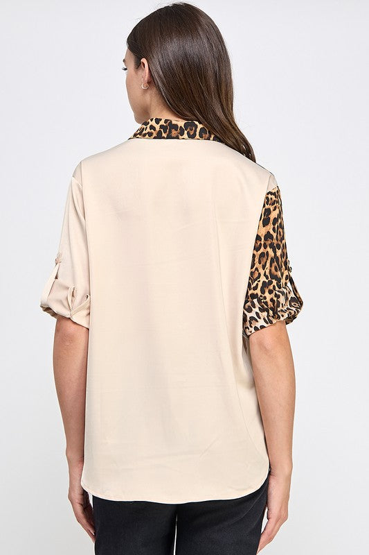 "Upgrade your wardrobe with the H15 FÁTIMA SHIRTS ANIMAL PRINT. This gorgeous blouse features a unique design, with solid color and animal print. The three-quarter sleeves and stunning print make it a must-have item. Perfect for adding a touch of style to any outfit."