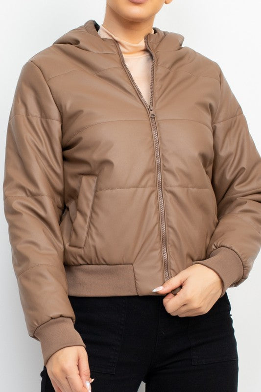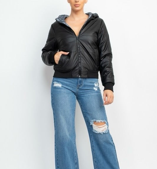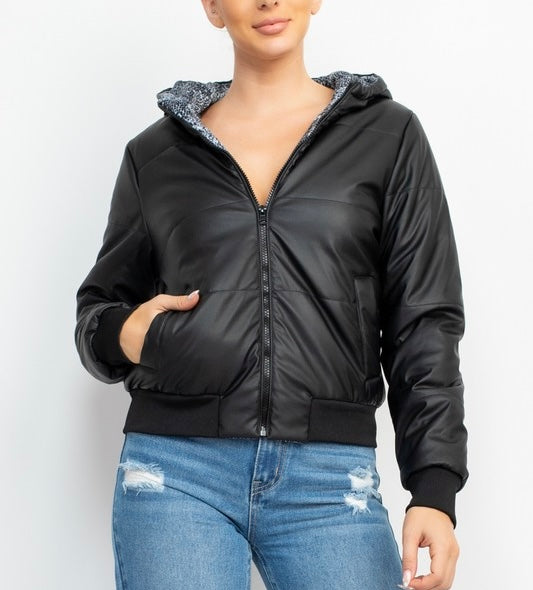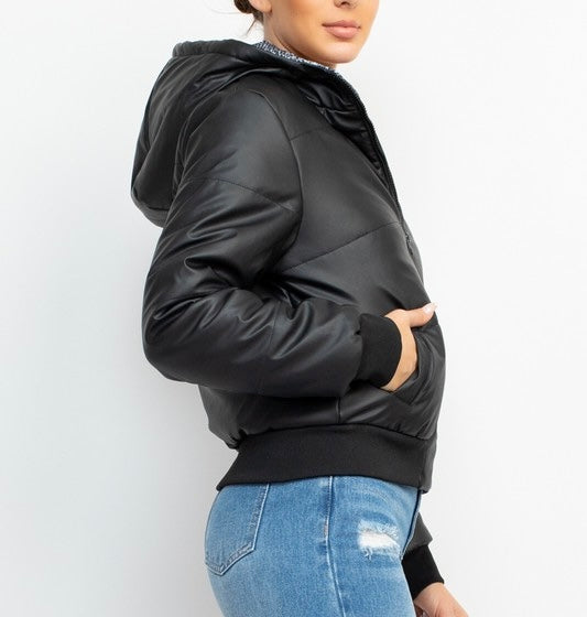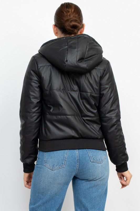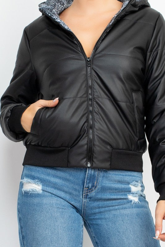 Hooded sweatshirt with fur closure