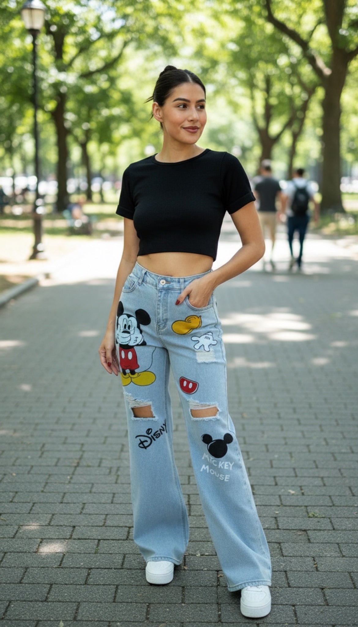 Jenny009-Beautiful high-waisted ripped jeans with a print.