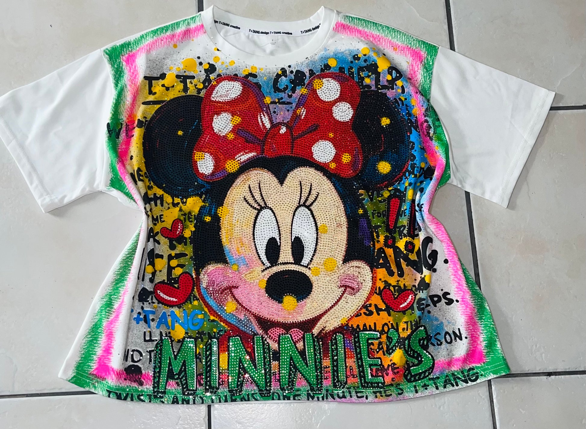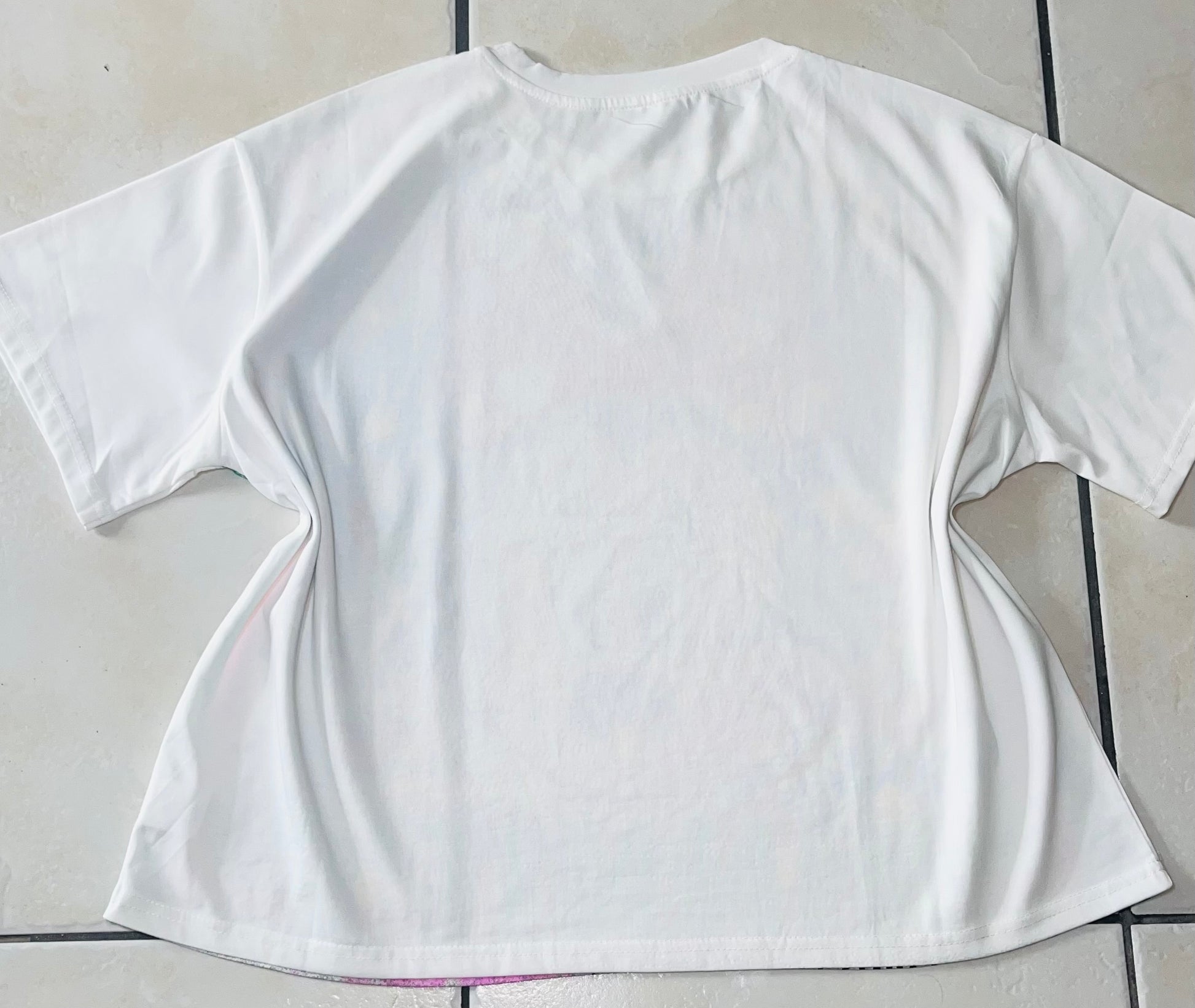 Clarita8001-Beautiful oversized t-shirt with short rhinestones