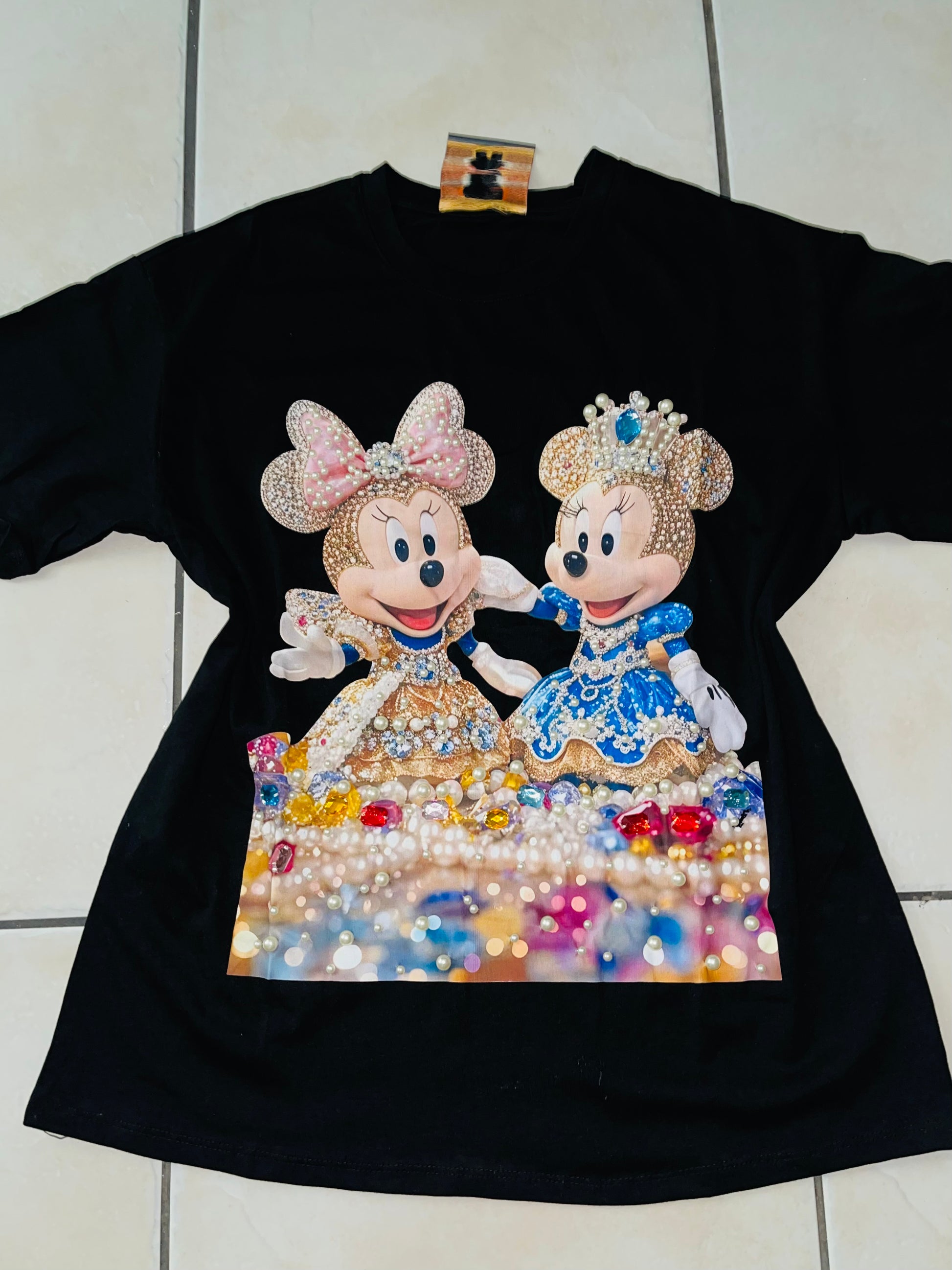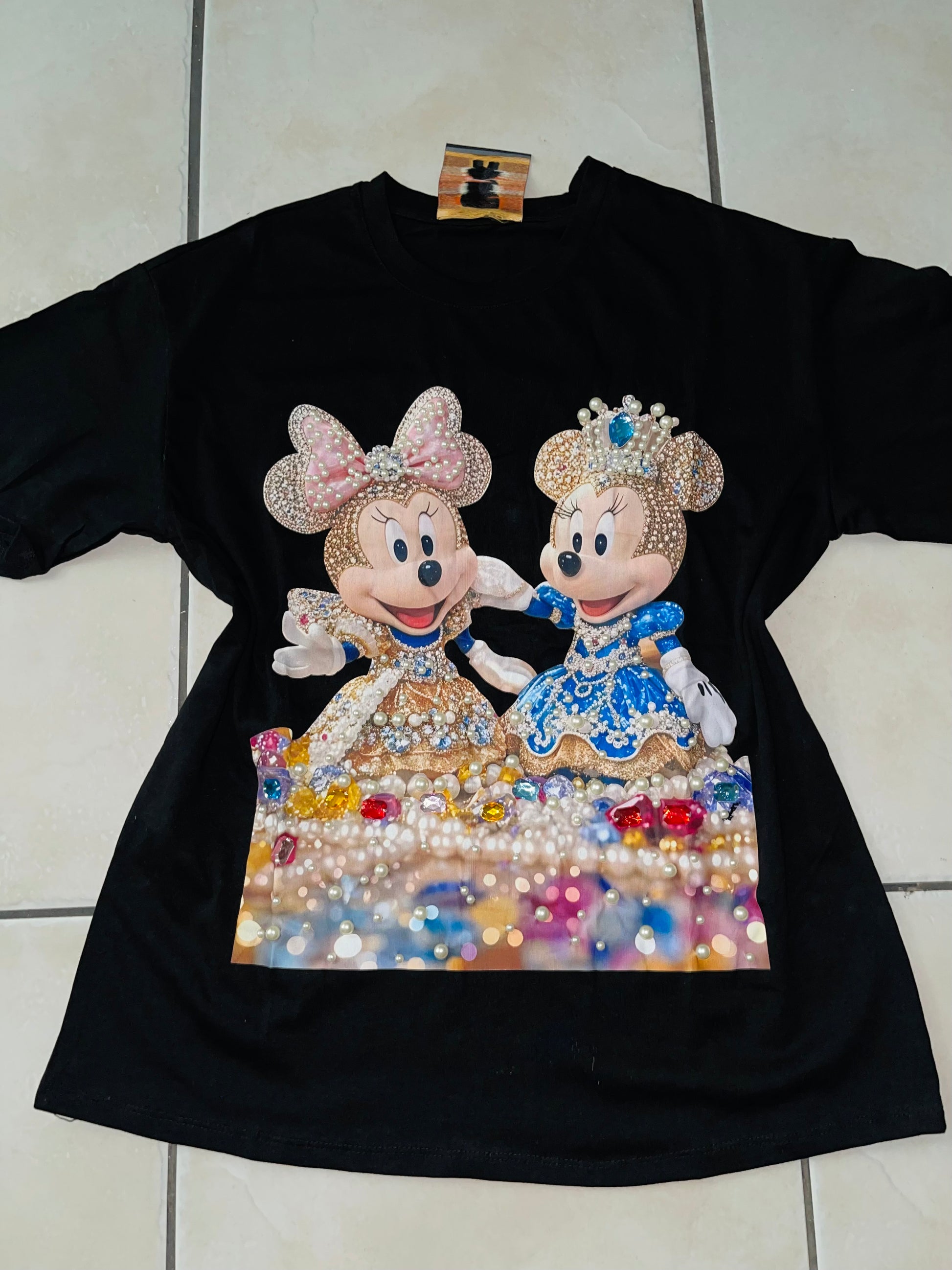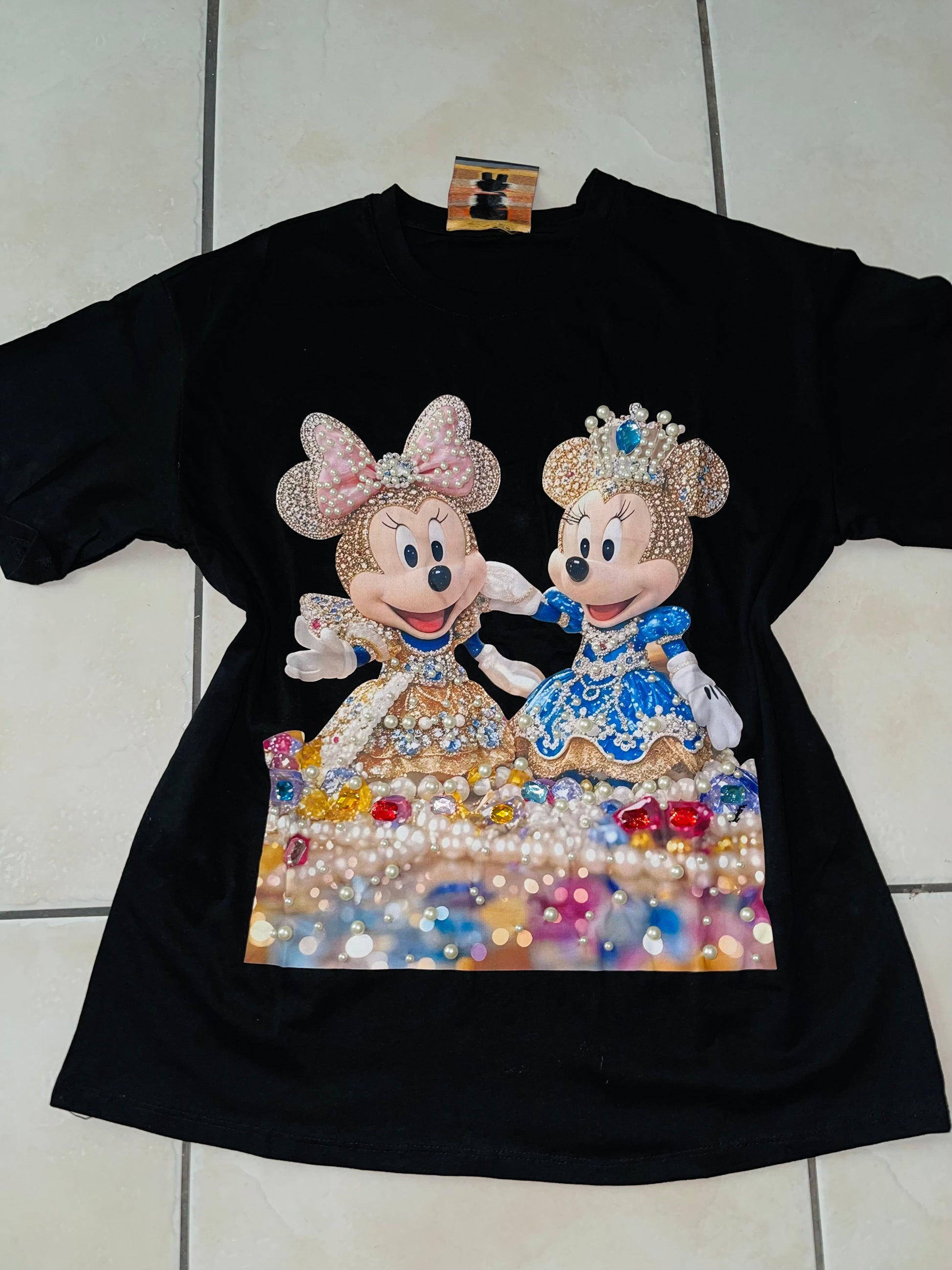 S0014-Beautiful one-size shirt with print and studded rhinestones