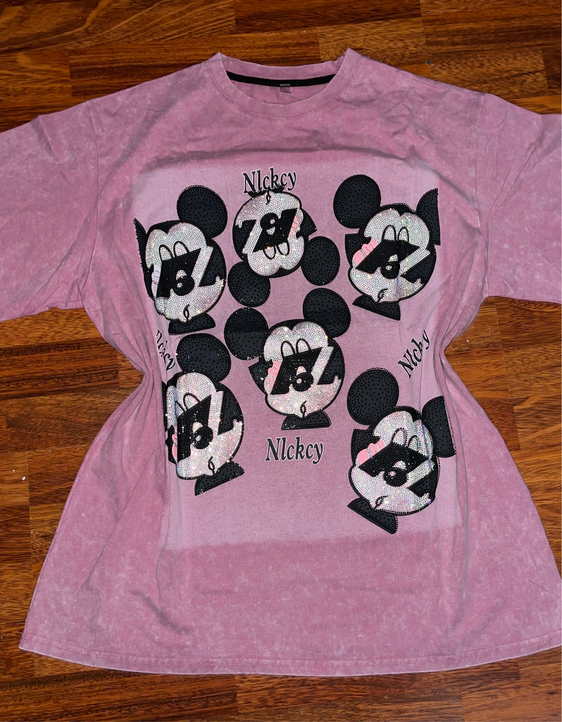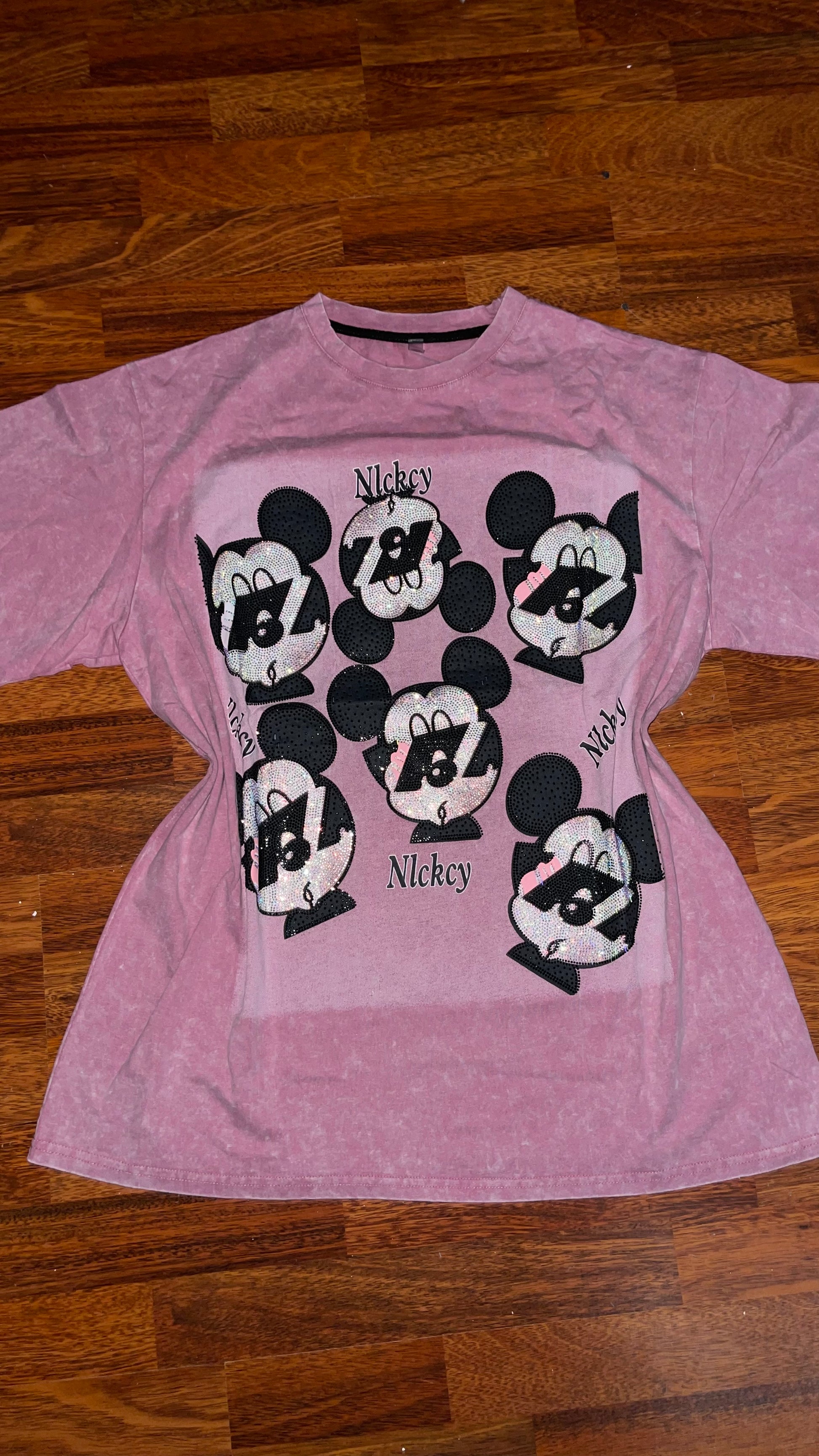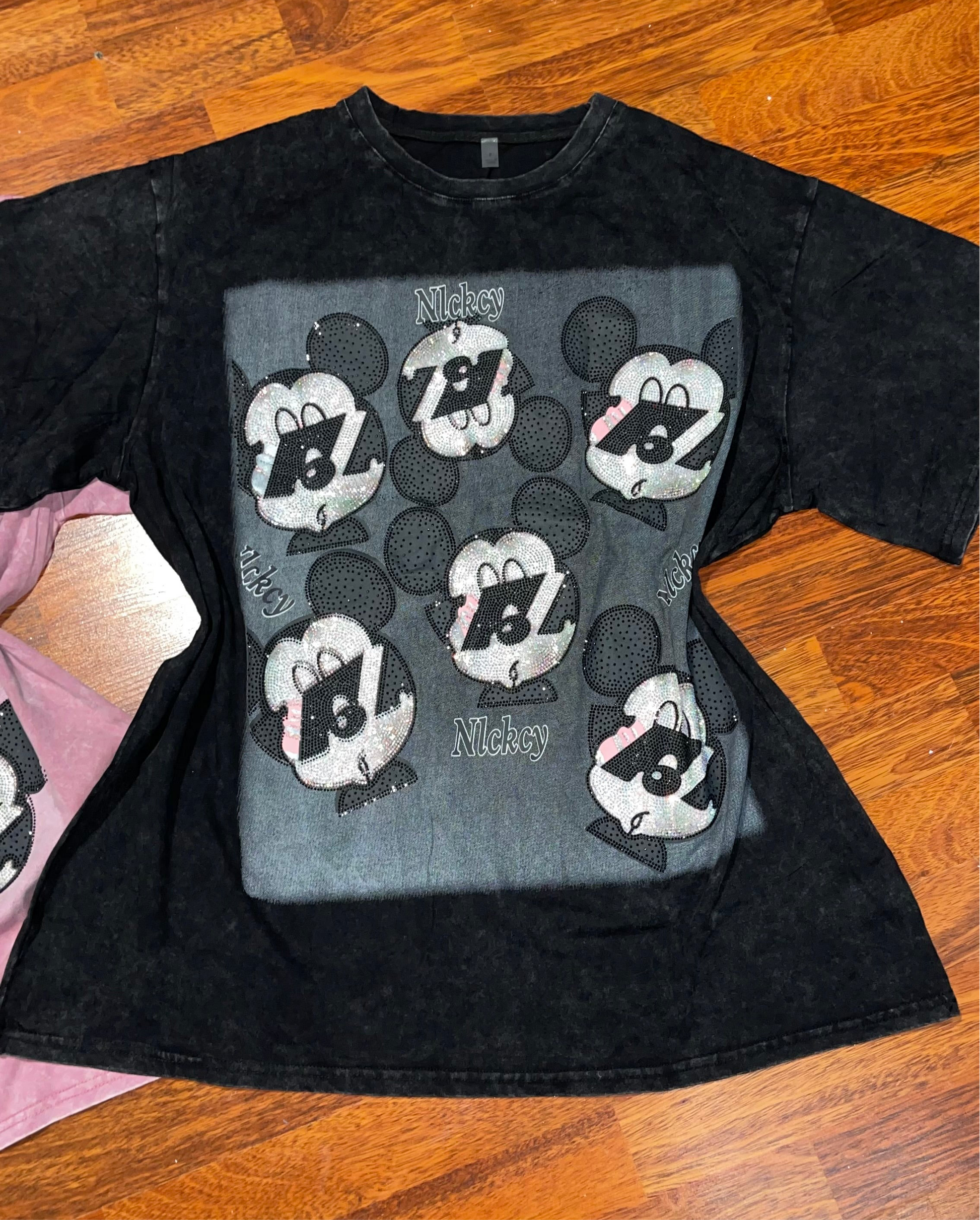 T0067-Camiseta Oversize Con pedreria sin ningun estampado en la parte de stras